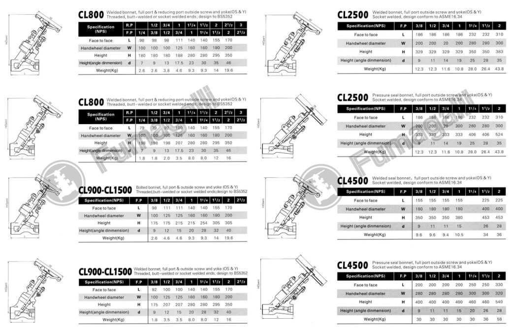 Y Type Globe Valves CL800-CL4500 LBS